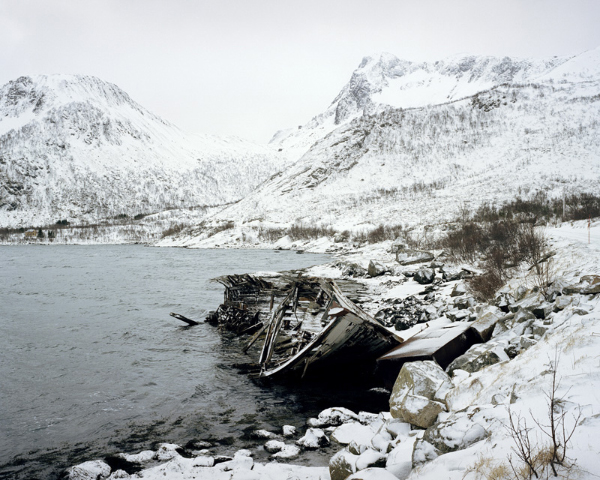 The roof of a light-blue car, nestled among the spreading fronds of wild ferns and protected by lush green branches. A run-down wooden shack in a snowy landscape, its once brightly colored paint now dull and peeling. Two rusty freight car frames that blend seamlessly into their surroundings. Lonely and abandoned, useless and redundant, these urban castaways stand alone in vast landscapes, devoid of human life – in places where they do not really belong.